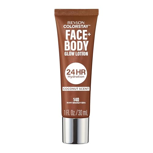 Revlon ColorStay Face & Body Glow Lotion, Lotion teintée visage et corps hydratante, Éclat naturel lumineux, Fini non gras 24H hydratation, 140 In My Bronze Era, 30 ml