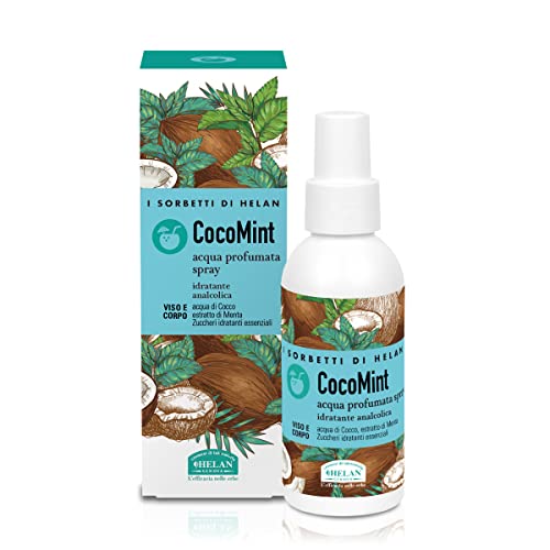 Helan, I Sorbetti CocoMint - Eau parfumée hydratante et sans alcool, Lotion tonifiante exotique à l'extrait de menthe et à l'eau de coco, Tonique visage et corps à la vitamine C, 100ml