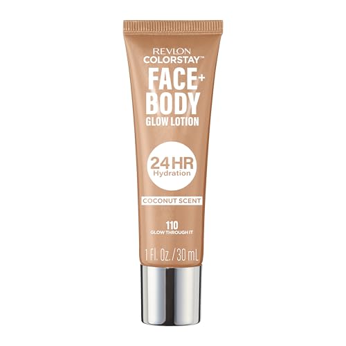 Revlon ColorStay Face & Body Glow Lotion, Lotion teintée visage et corps hydratante, Éclat naturel lumineux, Fini non gras 24H hydratation, 110 Glow Through It, 30 ml
