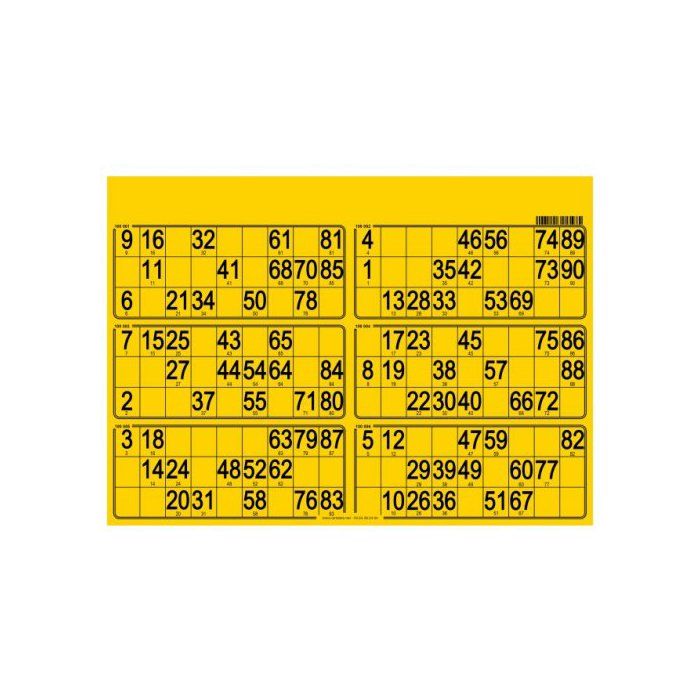 Plaque 6 grilles loto 90 numeros standard Jaune 29x20cm - Carton rigide epaisseur 1mm - Accessoire Jeu - Set materiel et carte