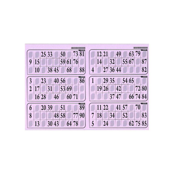 Carton Loto - Plaque de 6 grilles coloris Rose 90 numeros - Format 29x20 cm Ep 1.5 mm - Set Jeu planche loto bingo + carte