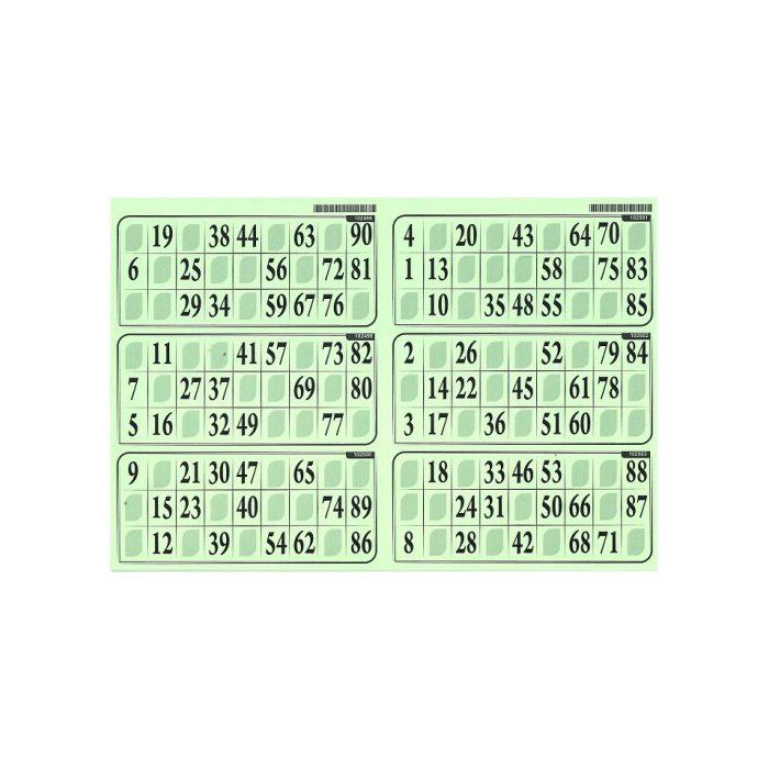 Carton Loto Bingo - Plaque de 6 grilles imprimees 90 numeros - Format Standard Rigide 1.5 mm Vert - Set accessoire + carte