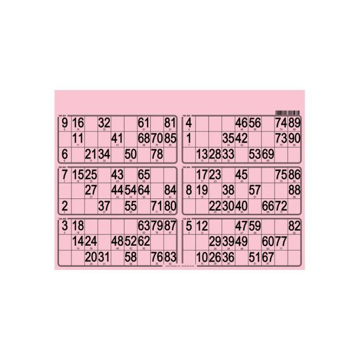 Carton Loto Bingo Plaque de 6 grilles imprimees - Rigide 1 mm couleur rose format standard - Set Accessoire tirage et carte