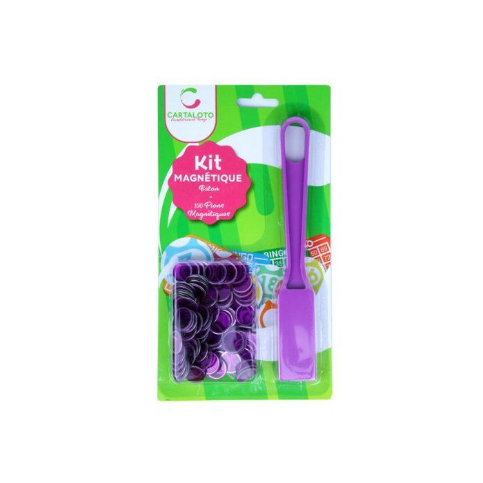 Kit 2 en 1 Baton magnetique Loto Ramasse Jetons + 100 pions de marquage aimante - Violet - Set Accessoire Jeu Bingo et carte