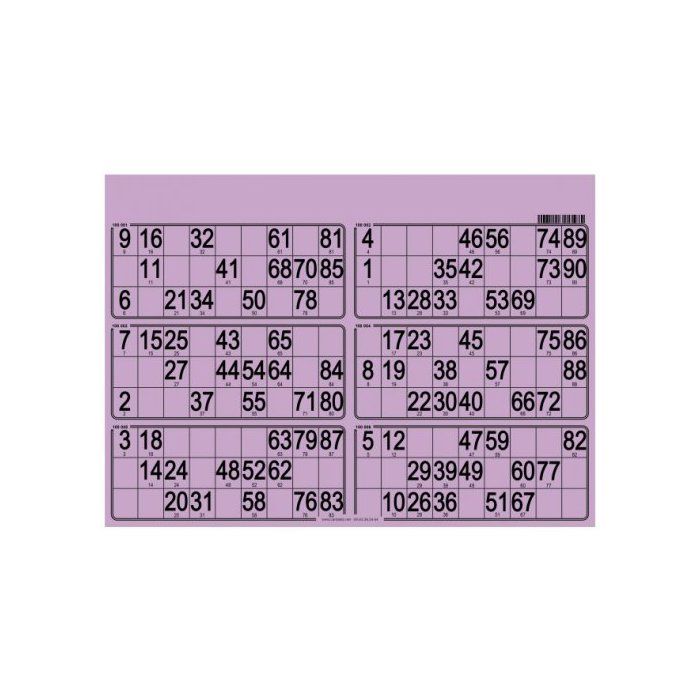 Planche de 6 grilles Loto 90 numeros violet - Plaque carton Rigide 1.5 mm Format standard - Set Accessoire soiree bingo et carte