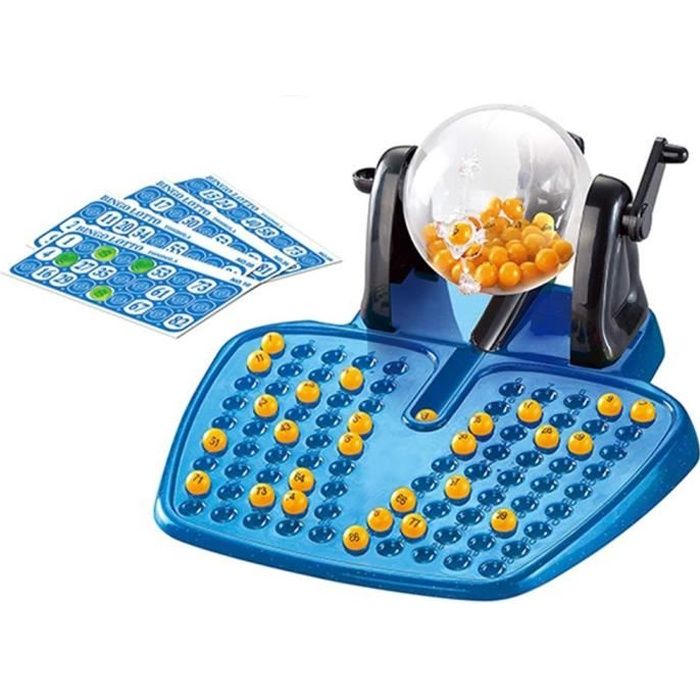 Jeu de societe Bingo loto Bleu avec distributeur de boules 90 Boules numérotées 48 cartes et des jetons HobbyTech