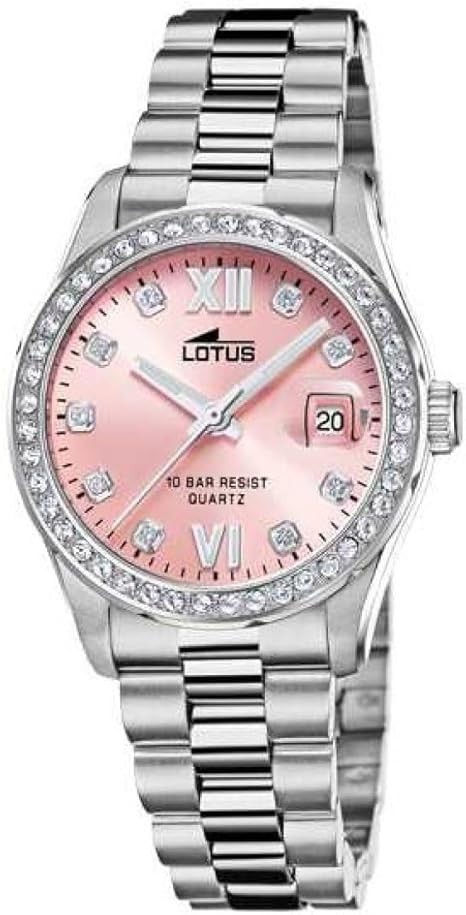 LOTUS Montre Femme Analogique Acier Inoxydable 316L Argenté - Mouvement Quartz - Verre minéral Haute résistance - Étanche 10 ATM - Calendrier 18930/8 - Freedom Collection