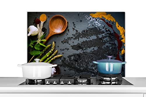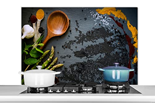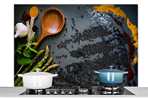 Credence Épices - Louche - Cuisine Fond de hotte 120x80 cm Credence aluminium Plaque inox de cuisine