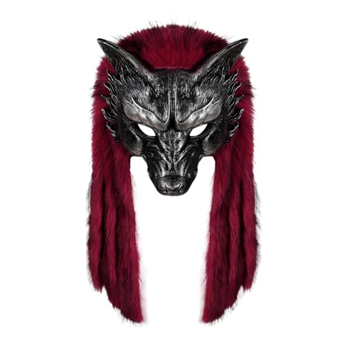Dasongff Masques de loup-garou Masque en fourrure Viking Femme - Pompons décoratifs en peluche - Masque loups médiéval - deguisement loup garou femme pour les fêtes cosplay - Costume de carnaval