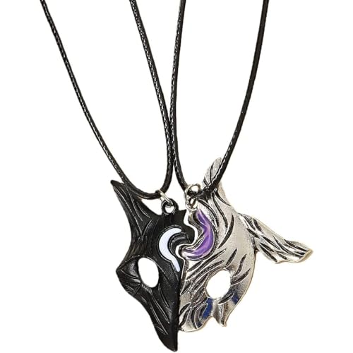 Collier avec pendentif loup et masque d'agneau pour couple, Kindred Eternal Hunters Best Friend, noir et argent, taille unique, Métal, Pas de gemme