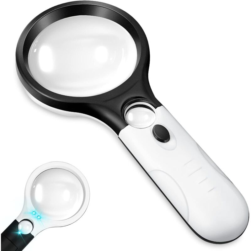 Loupe avec lumière, portable double lentille 10X, poids léger, grande loupe 3 LED pour la lecture des personnes âgées et l’intérêt des enfants
