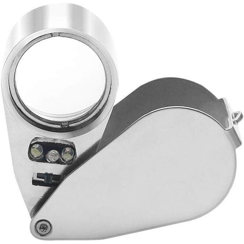 Shining House - Loupe de bijoutier 40X Loupe Pliante en métal avec loupe à lumière uv led pour Diamants bijoutiers pièces de Monnaie (Reconnaissance