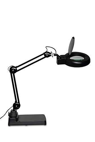 Lampe Loupe 10X avec 72 LED en 3 Couleurs et 10 Luminosités, 2 en 1 Lampe Loupe Intensité avec Socle et Support, Bureau Loupe Eclairante sur Pied pour Lire Travaux manuels, Loisirs de Couture (Noir)