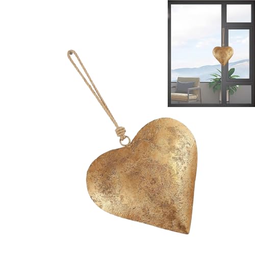 Générique Metal Heart Wall Decor – Heart-Shaped Iron Ornament With Golden Antique Finish | Metal Hearts Decorative Bell With Hanging Rope | 3D Wall Sign Love Symbol | For Rustic Farmhouse Home Decor