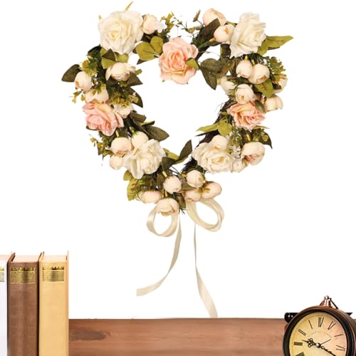 Genérico Spring Rose Heart Wreath - Décoration de vin artificielle en forme de cœur | Romantic Valentines Day Wedding Home Door Wall Hanging | Love Symbol Gift For Birthday