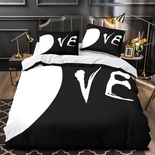 ZAWPPEUIO Love Symbol Housse de Couette Microfibre 3D Imprimée 3 Pièces 2xTaies Douce Black Blanc Ensemble De Literie Confortable Entretien Facile for Garçon Single(140x200cm)