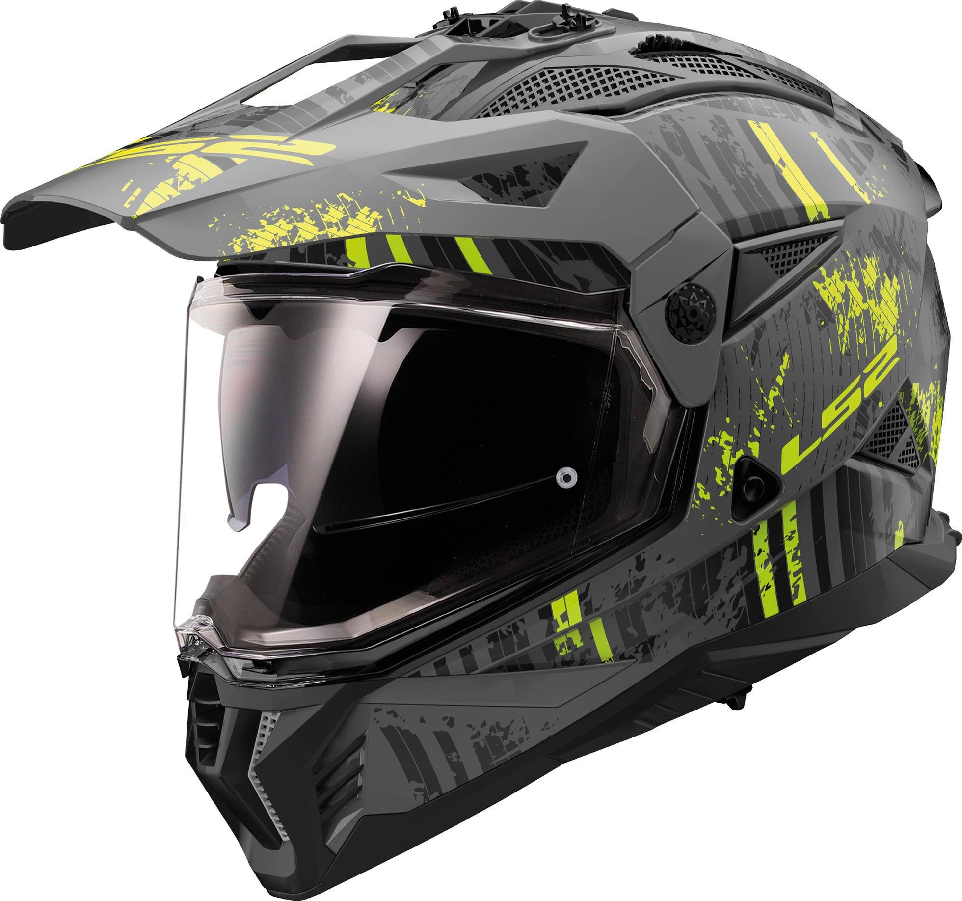 LS2 MX702 Pioneer II Crazy Motocross Helmet, grau matt/neon-gelb, XL (61/62)