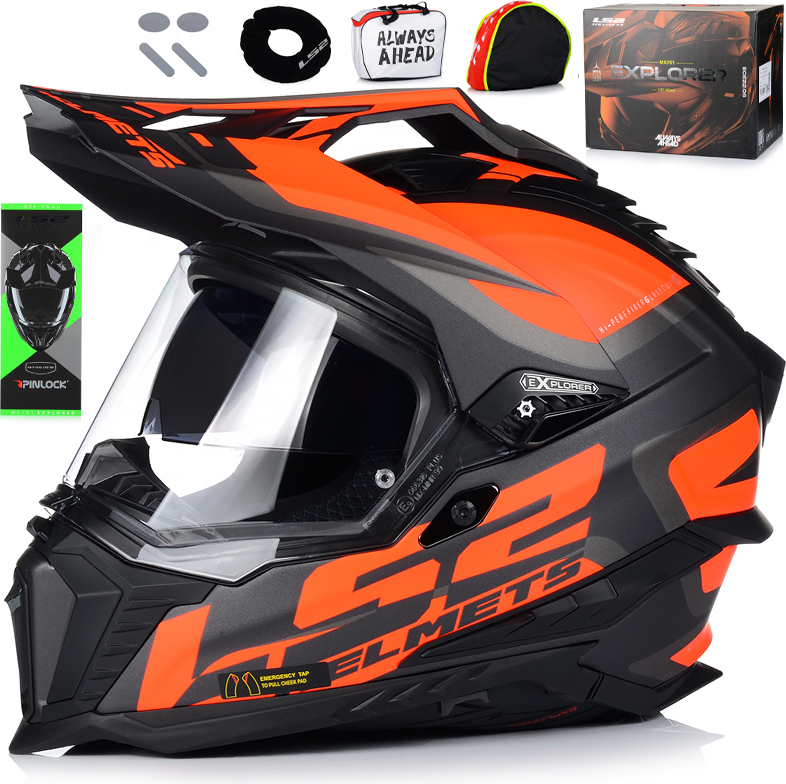 Casque LS2 MX701 Explorer Alter Noir Mat Orange Fluo