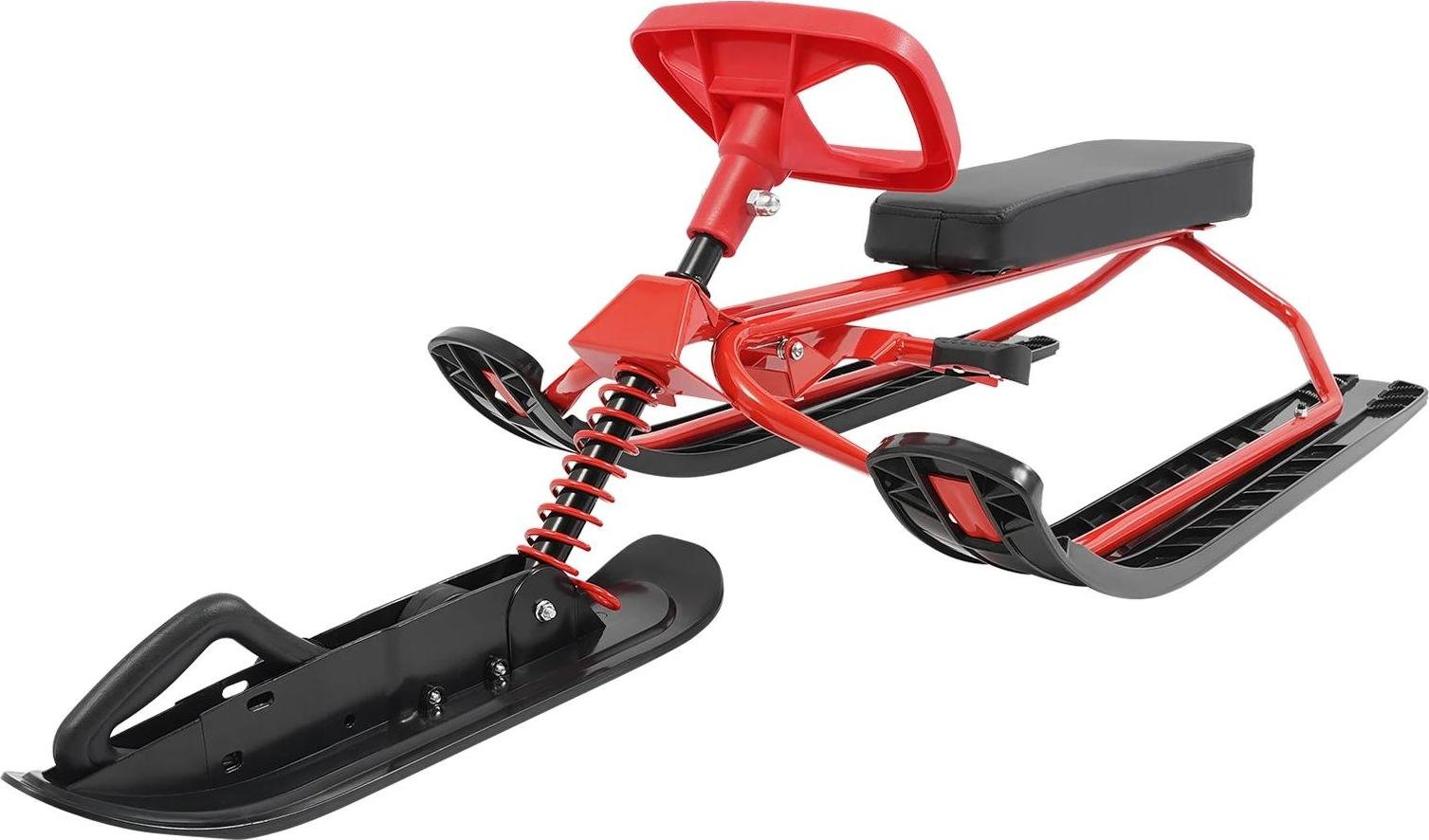 Luge Snow Racer - Luge dirigeable avec volant - Pour enfants de 3 à 15 ans - Supporte jusqu'à 100 kg - Pour la neige et la glace - Rouge