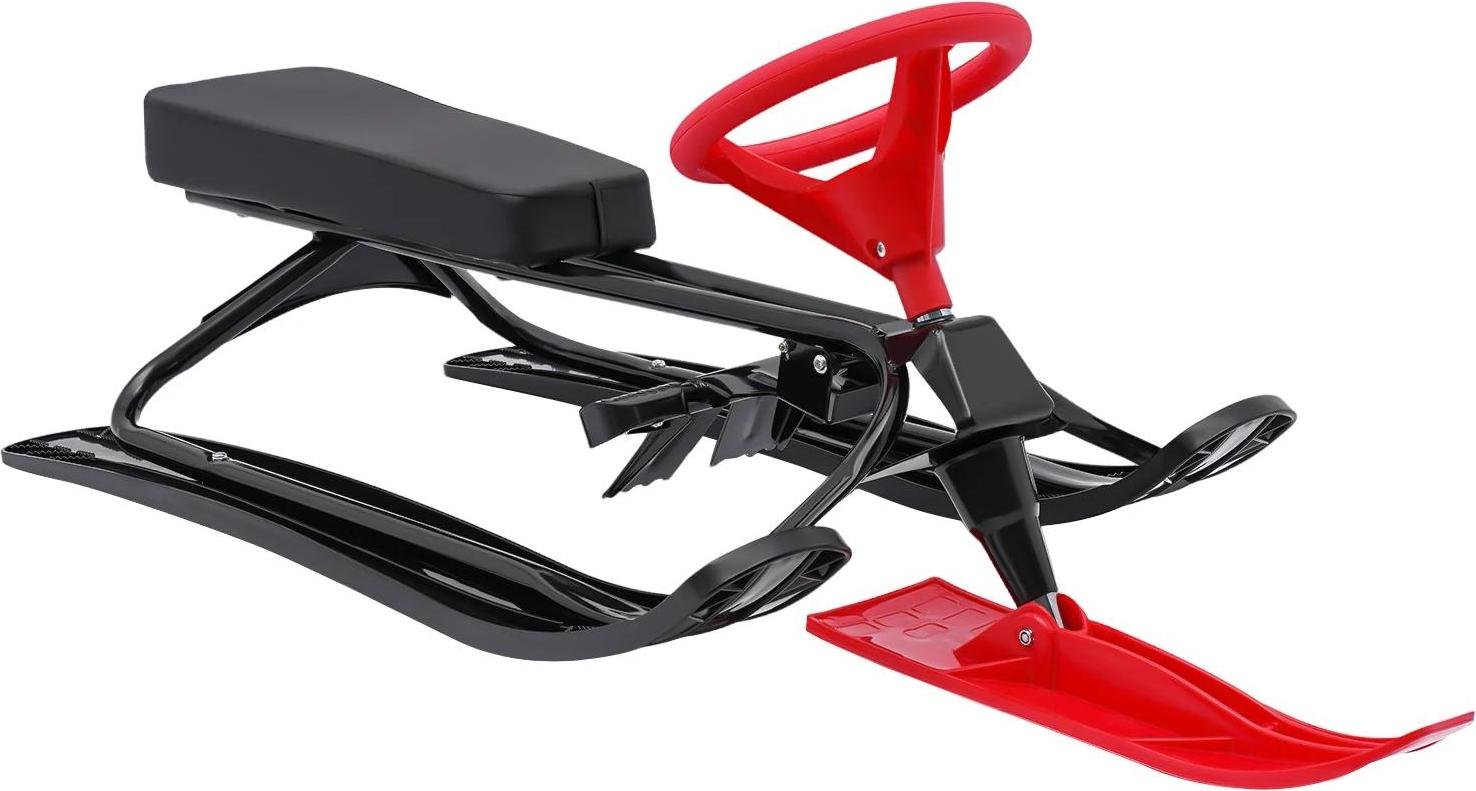 Luge Snowracer - Avec volant - Capacité de charge 100 kg - 50×120×38 cm - Acier et HDPE - À partir de 5 ans - Rouge