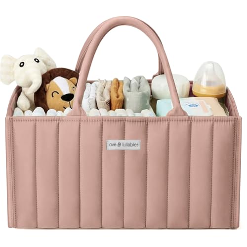 love & lullabies Panier à couches élégant pour bébé, rangement des couches, essentiels pour nouveau-né, liste de fête prénatale (rose pâle)
