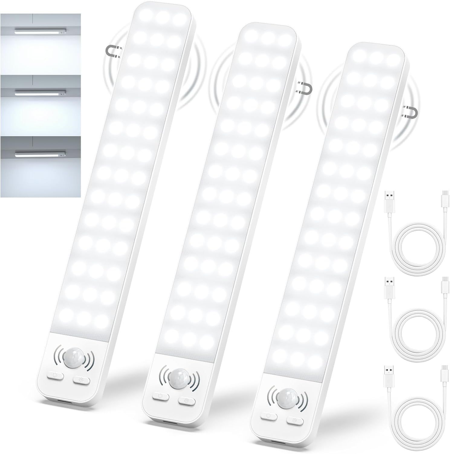 Lampe De Placard 25Cm Lot De 3, Eclairage Led Rechargeable Interieur Placard 6500K Dimmable 10%-100% Lampe Armoire Detecteur Mouvement 2000Mah Auto Lumiere Sans Fil Reglette Escalier Cuisine