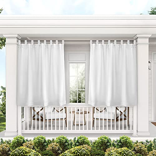 Exclusive Home Cabana Lot de 2 Panneaux de Rideaux Solides pour intérieur/extérieur filtrant la lumière avec languettes Auto-agrippantes, 137,2 x 160 cm, Blanc