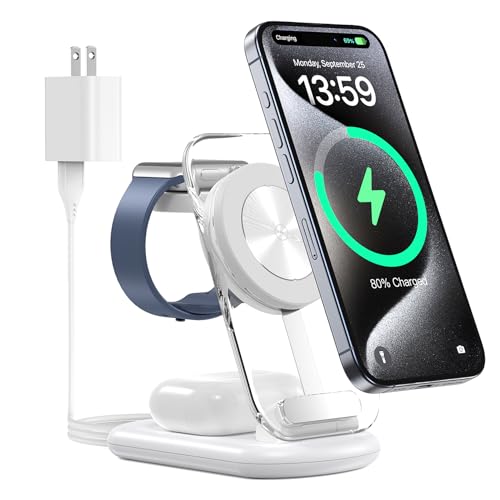 Chargeur sans Fil 3 en 1, magnétique, Pliable, Angle réglable, avec lumière d'ambiance Tactile, Peut Charger 3 appareils en même Temps, Chargeur Portable pour Voyage et Maison