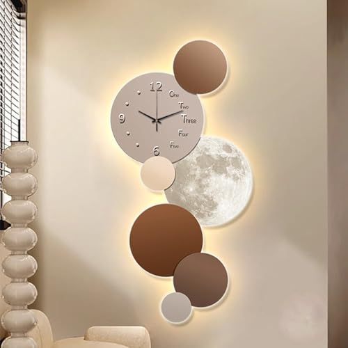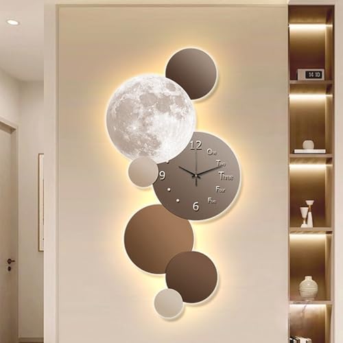JIHAJU Horloge Murale silencieuse Salon décoration Art Mural 3D LED dimmable télécommande Porcelaine Cristal Design Moderne Chambre Bureau lumière décoHD4K(D,70 * 140cm)