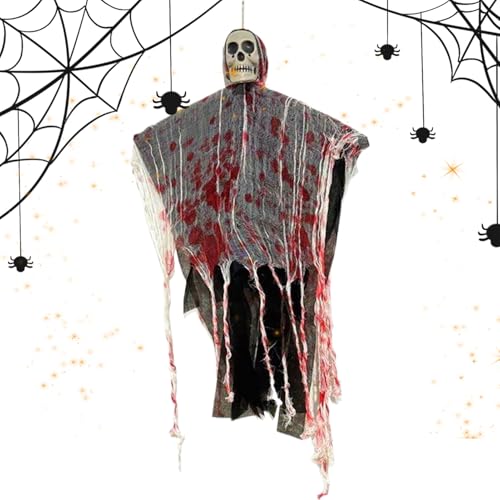 Kustimantu Décorations pour Arbres d'halloween, Pendentif Squelette Effrayant avec Lumière pour Porches, Déco Sinistre pour Maison pour Fêtes, Évasion, Pelouse, Jardins, Soirées,
