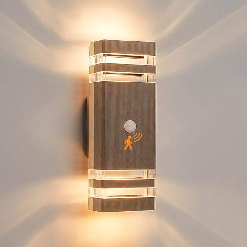 CELAVY LED Applique Murale Exterieur avec Détecteur de Mouvement, IP65 Étanche Luminaire Extérieur, GU10 Moderne Lampe Mural Exterieure 3000K, Up Down Éclairage Lumière d'Extérieur,Gris Clair