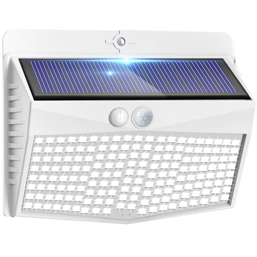 LOTMOS Lampe Solaire Exterieur Detecteur de Mouvement, 176 LED Lumiere Extérieur IP65 Étanche Spot Solaire 3 Modes Eclairage Exterieure, Projecteur Extérieure pour Jardin Garage, Blanc Froid