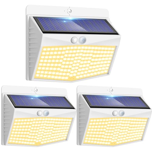 LOTMOS Lot de 3 Lampe Solaire Exterieur Detecteur de Mouvement, 176 LED Lumiere Extérieur IP65 Étanche Spot Solaire 3 Modes Eclairage Exterieure, Projecteur Extérieure pour Jardin Garage, Blanc Chaud