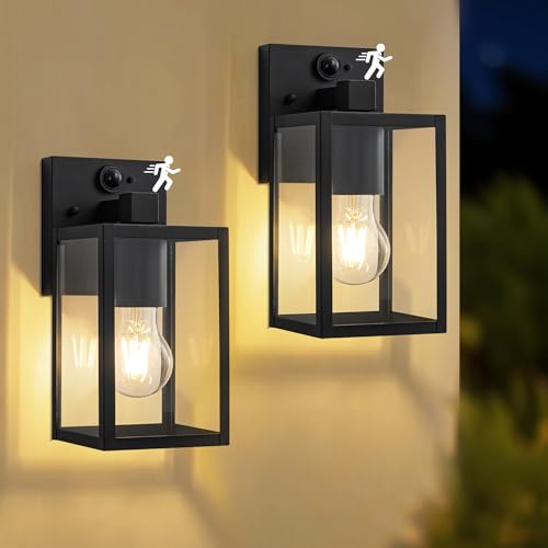 FTL Lampe Murale Detecteur de Mouvement 2 Stück, Applique Murale Améliorée Extérieure avec Capteur de Mouvement, Porche Éclairage Mural d'Extérieur, E27 PIR Lumiere Mural pour Jardin Terrasse, IP44