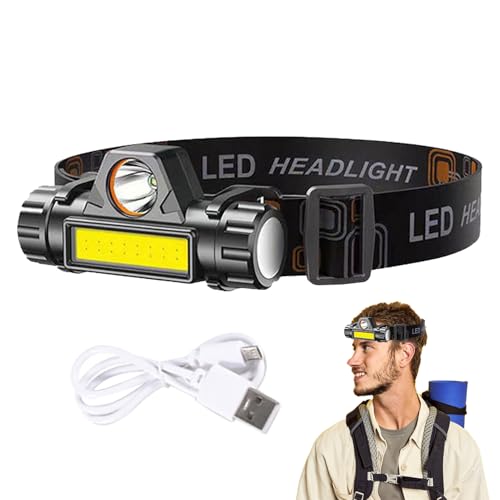 Xuodawer Lampe frontale avec capteur puissant rechargeable, phares USB, lumière de recherche pour camping, lumière LED frontale