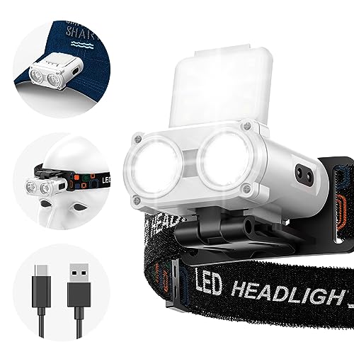 Smiling Shark Lampe frontale Rechargeable, Clip de Chapeau de Tête LED Lumière Frontale de Poche Portable 5 Type de Lumière Blanche & Rouge Dimmable Jogging, LED-Lamp-Frontale-Clip-Chapeau