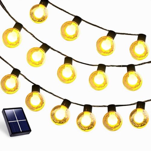 Yuusei Guirlande Solaire Exterieur 15M, IP65 étanche Guirlande Lumineuse Exterieure, avec 25+1 LED G40 Guirlande Guinguette | 4 Modes Lumiere Solaire Exterieur pour Jardin, Terrasse, Balcon, Camping