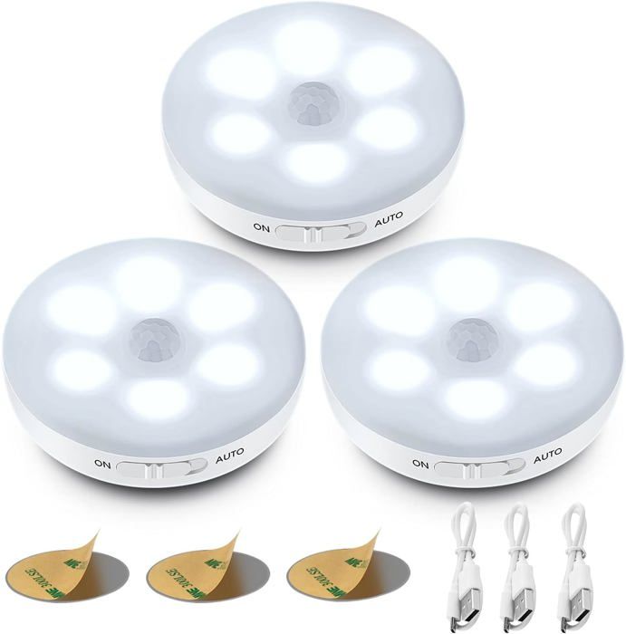 Veilleuse LED Automatique Lampe Detecteur de Mouvement Interieur Lumiere Autocollante USB Pile Rechargeable LED Sans Fil (Blanc)