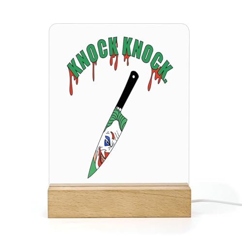 Lorolivier Panneau acrylique personnalisé veilleuse joker clown couteau nuit led lumière enfants bureau lampe de chevet base en bois veilleuse tout-petit nouveau-né cadeau anniversaire