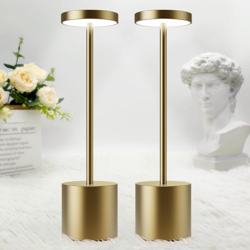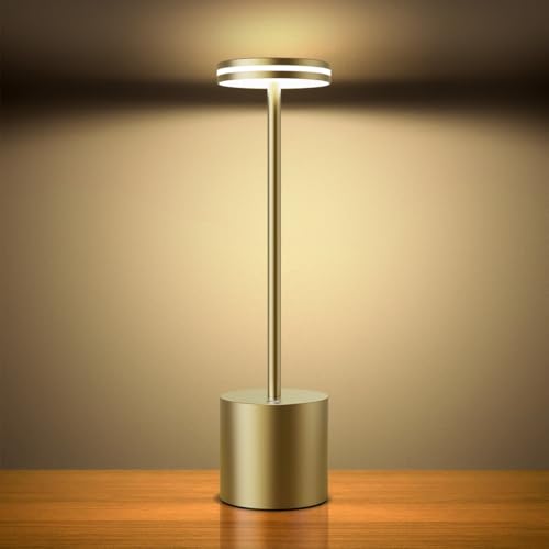 Hapfish lampe de table sans fil rechargeable LED, Lumiere bureau tactile exterieur 6000mAh, Lampe a poser metal design modern, étanche, dimmable, pour chevet, interieur, terrasse, restaurant (dorée)