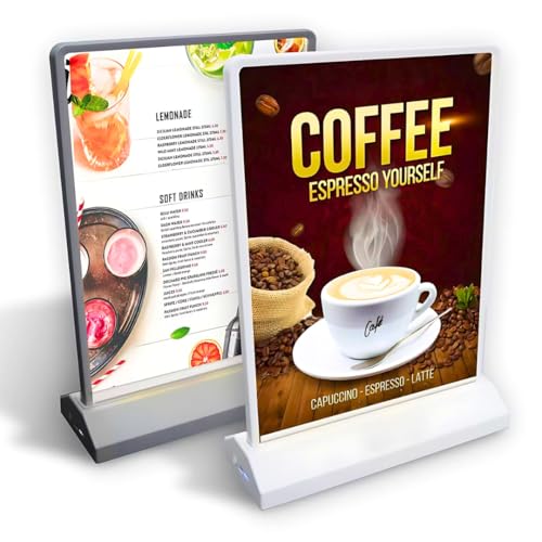 Boîte à lumière LED Publicitaire de Bureau Rechargeable A4 Double Face Portable Acrylique Clignotant Table Menu Stand (A4 (210mm x 297mm), Noir)