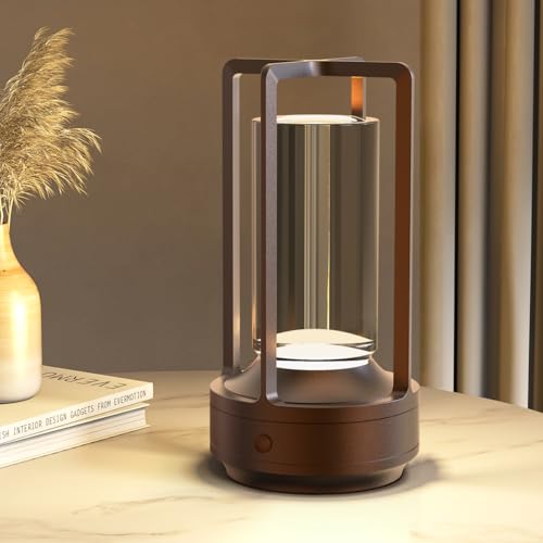 Hapfish lampe de table sans fil rechargeable LED, Lumiere bureau tactile exterieur 6000mAh, Lampe a poser metal design modern, étanche, dimmable, pour chevet, interieur, terrasse, restaurant (marron)