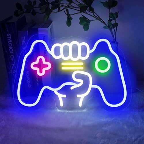 BringLuck2U Gamer Neon Board, Controller Shape Lights Game Room Decor - Gaming Neon Sign pour Adolescent Garçon Chambre Décor, Dimmable Jeu Néon Lumière Pour La Décoration Murale - Meilleurs Cadeaux