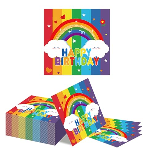 Kotkiddy 40 Pièces Serviettes de Fête Arc-en-Ciel Neon Lumière Joyeux Anniversaire Fête Arc-en-Ciel Décoration de Table en Papier Jetable Accessoires de Musique Feuille d