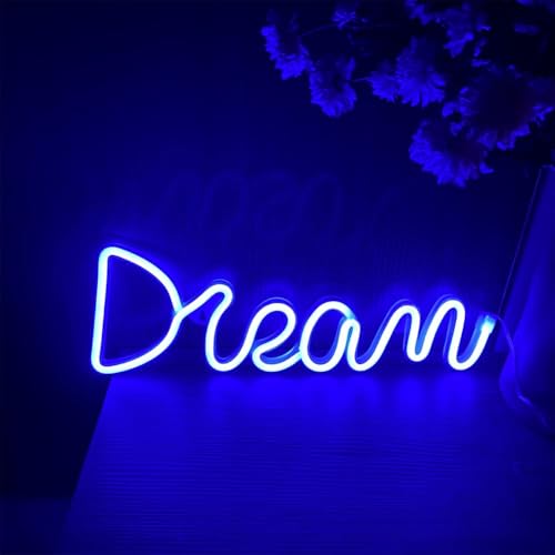Dream Signe de néon de rêve pour décor mural LED Signe de lumière de néon de rêve USB Powered Wall Neon Light up Sign for Party Wall Décor Party Light Home Room Christmas Club Bistro Decor 5v (bleu)