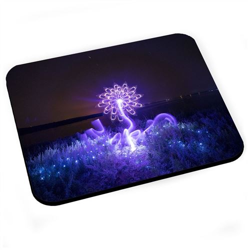 Tapis de souris Light painting fleur violette neon lumiere lac abstrait