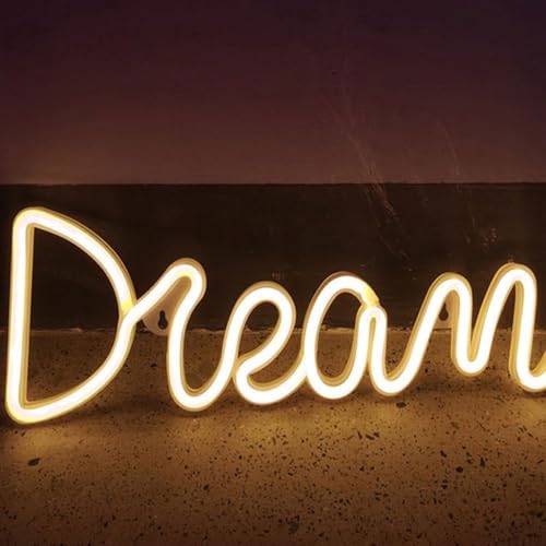 GarveeHome Dream Neon Lumière néon LED en forme de rêve - Panneau lumineux LED alimenté par USB - Veilleuse néon - Décoration pour mariage, anniversaire, décoration murale, bar, fête - Blanc chaud