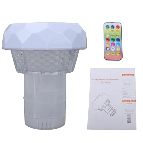 Distributeur de chlore : lumière solaire, piscine LED, flotteur imperméable | Diffuseur flottant, support de tablette chimique (pour fontaines extérieures, étangs de jardin, nettoyage