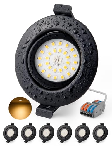 Spot Led Encastrable Noir Orientable Extra Plat Lumiere Plafond Interieur IP44 Salle de Bain, Spote Trou 68mm - 80mm pour Cuisine Reglable Lampe 230V 4.7W 760LM Pivotant 3000K Blanc Chaud, Pack de 6