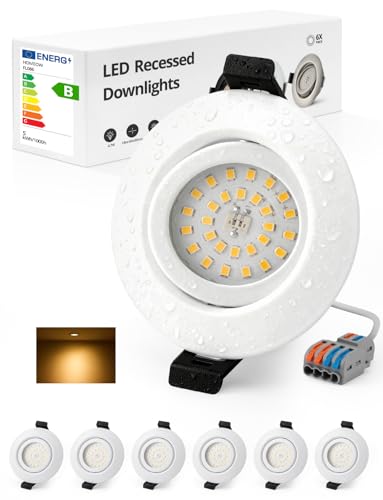 Spot Led Encastrable Blanc Orientable Extra Plat Lumiere Plafond Interieur IP44 Salle de Bain, Spote Trou 68mm - 80mm pour Cuisine Reglable Lampe 230V 4.7W 760LM Pivotant 3000K Blanc Chaud, Pack de 6